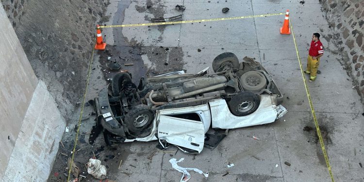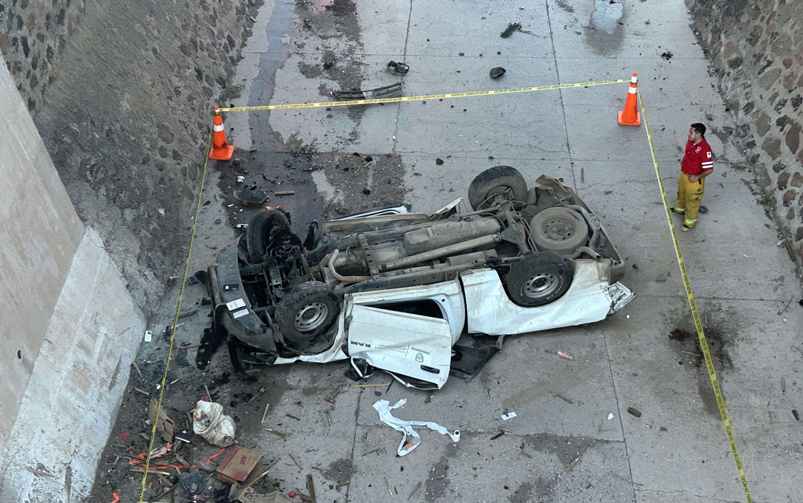 Al parecer los dos hombres que viajaban a bordo de una Dodge RAM con logos del Gobierno del Estado salieron del camino y cayeron a un arroyo bajo un puente que se sitúa después de una marcada curva en dicha zona.