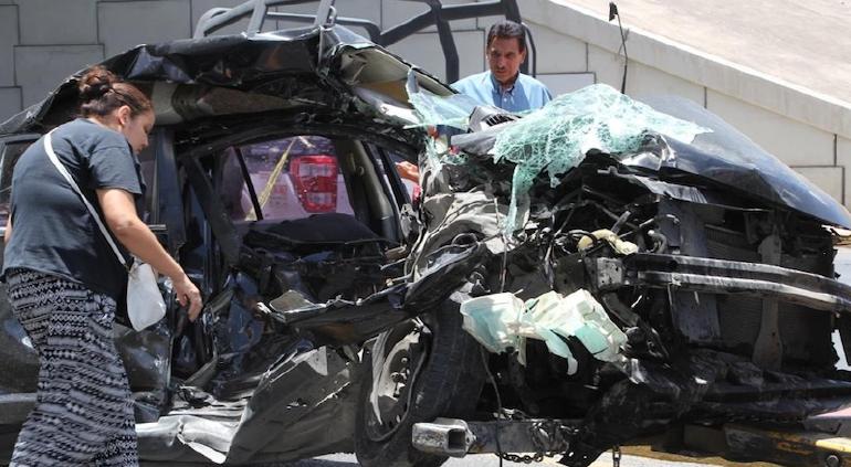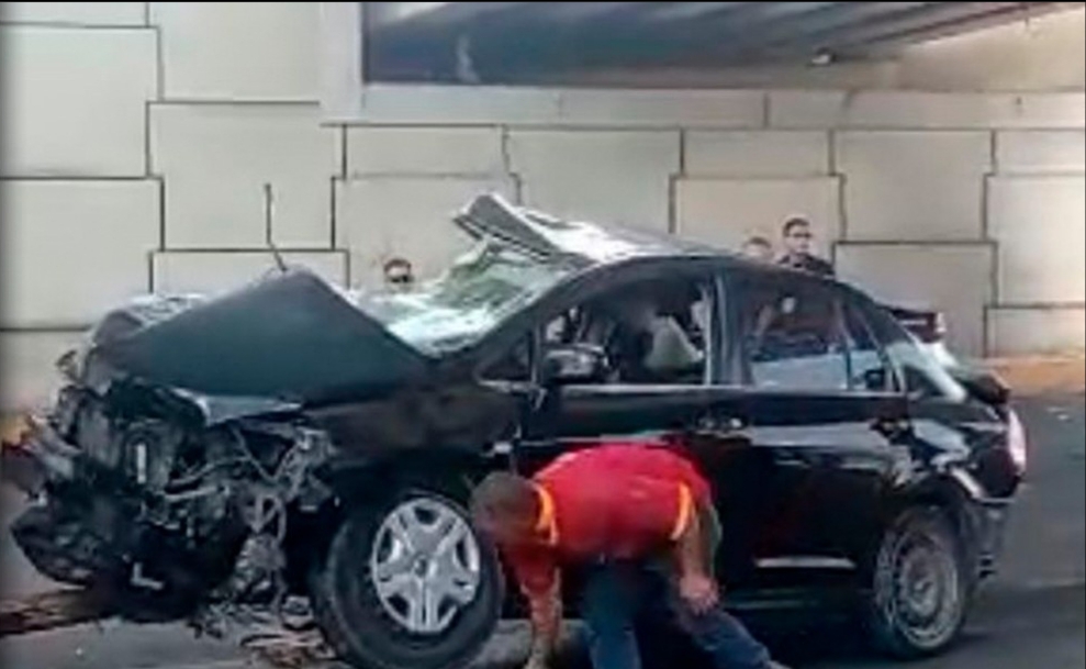 El saldo del encontronazo es de cuatro personas lesionadas, entre ellos la conductora del vehículo, quien quedó atrapada entre los fierros retorcidos.