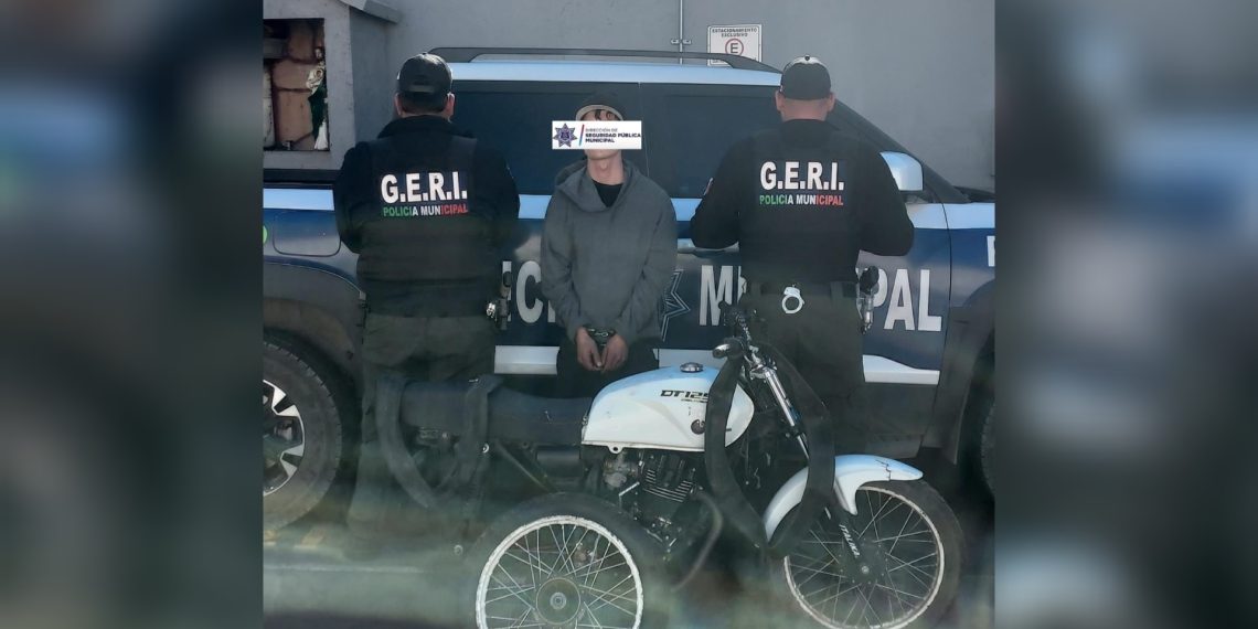 Los hechos se registraron cuando agentes municipales realizaban un recorrido de rutina sobre la avenida Niños Héroes, momento en el que se les indicó acudir a la calle Olmo, en la colonia Solidaridad, tras el reporte de una ciudadana que manifestó que su hijo se encontraba desmantelando una motocicleta de procedencia desconocida en el exterior de su domicilio.
