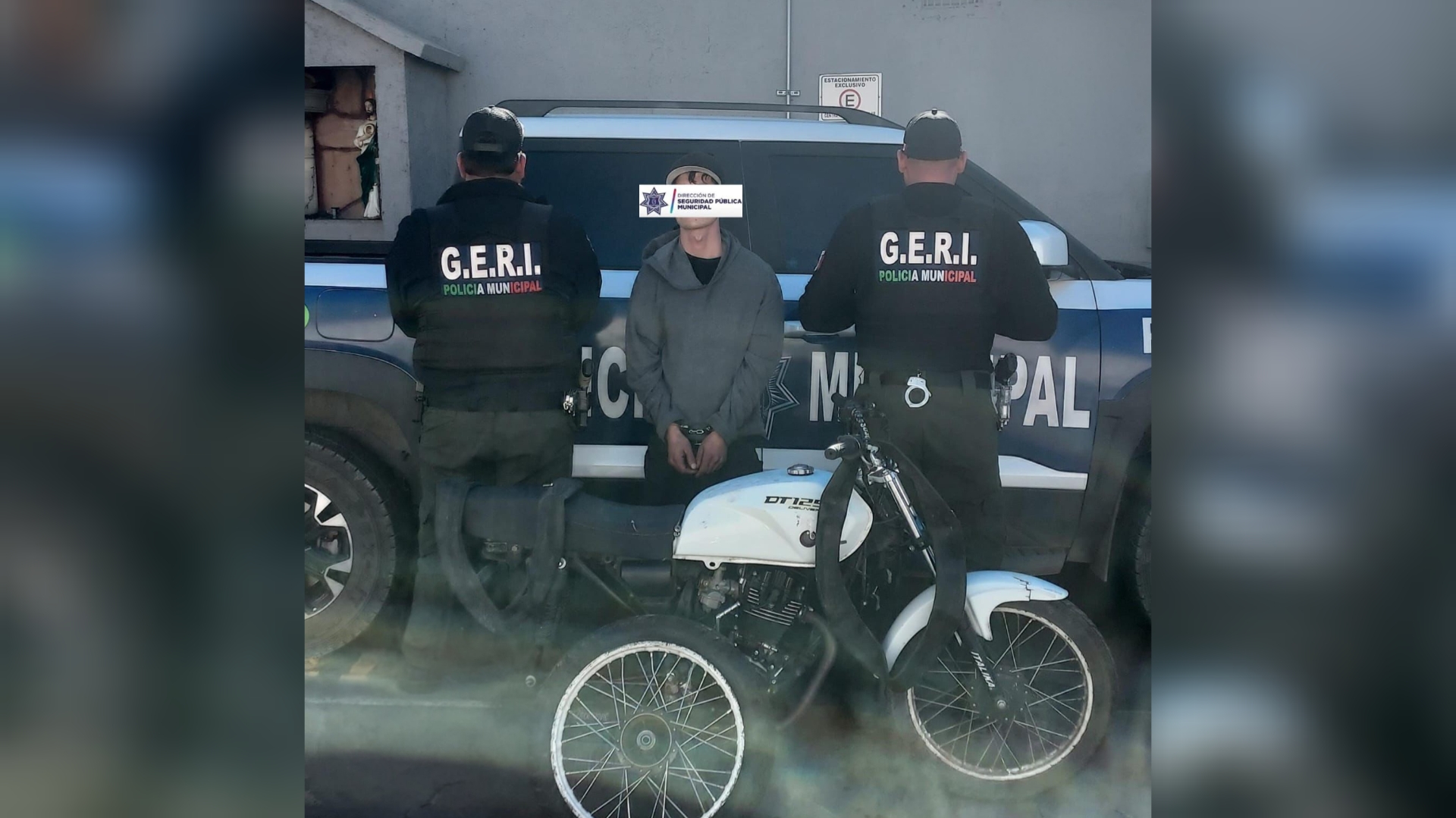 De manera inmediata, los agentes procedieron a inspeccionar la motocicleta Italika DT125, color blanco, y al verificar sus datos en la base correspondiente, se confirmó que contaba con reporte de robo vigente, interpuesto el 8 de enero de 2026, en la calle Ojinaga, de la colonia Centro.