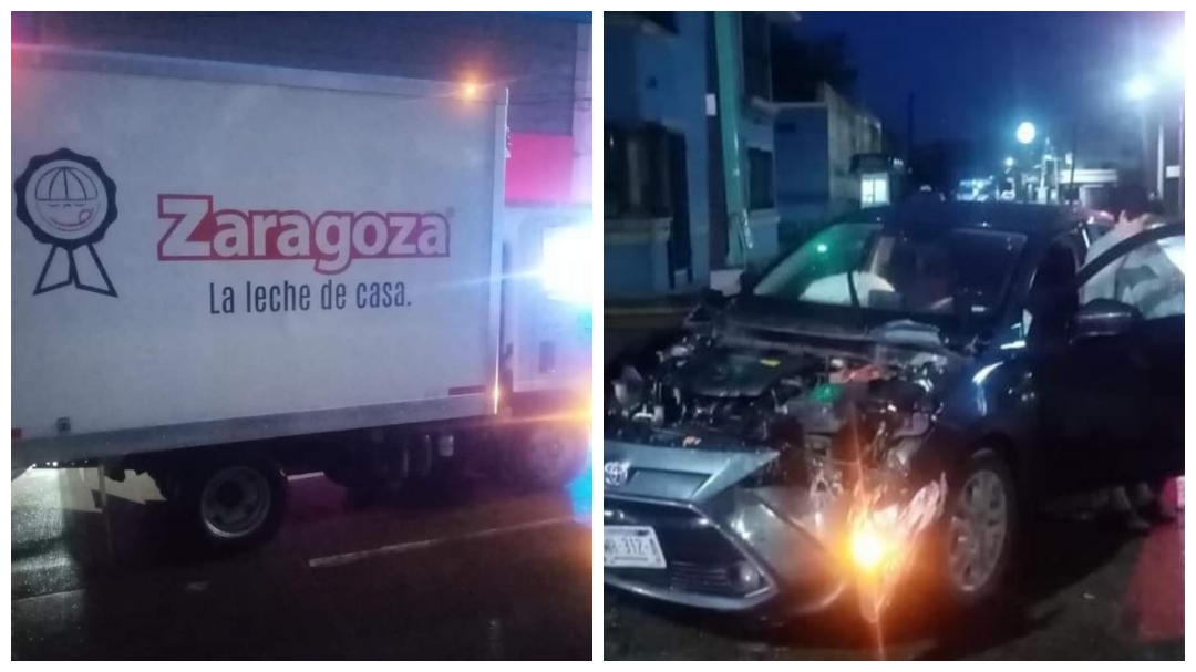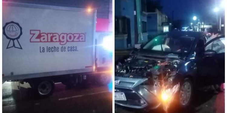 Una conductora provocó un choque contra un camión repartidor de leche en el semáforo de Las Quintas, mismo que dejó solo daños materiales.