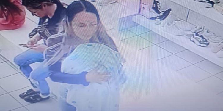 Una de las cámaras del circuito cerrado de una tienda del centro de la ciudad, logró captar el rostro de una de las presuntas defraudadoras, misma que carga en brazos lo que parece ser un bebé o la cobija en la que se arroparía. A sus espaldas, quien sería su cómplice.