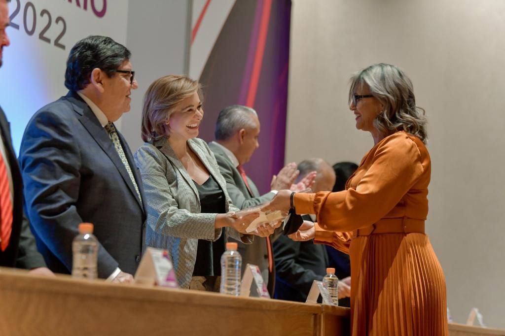 En representación del grupo de docentes, la maestra Maribel Armendáriz Granillo, a nombre de quienes recibieron el reconocimiento, agradeció este homenaje que representa una distinción a quienes han trabajado con vocación aportando lo mejor.