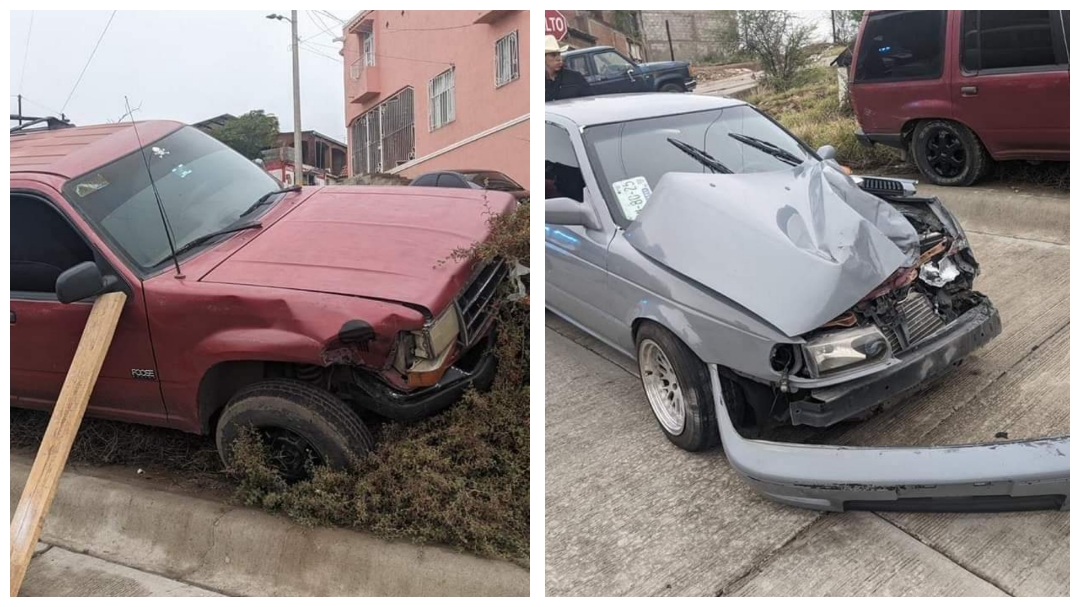 Los hechos se registraron cerca de las 18:30 horas de ayer domingo en el cruce de las calles Frontera Calexico y Suecia, hasta donde llegaron oficiales de Vialidad y paramédicos de Cruz Roja, encontrando una Ford Explorer color guinda, de modelo atrasado, la cual se encontraba fuera de la cinta asfáltica en una pequeña loma, misma que, aparentemente, se quedó sin frenos, impactando por detrás a un Nissan Tsuru, color gris, modelo atrasado, mismo que presentaba un fuerte golpe en la parte frontal.