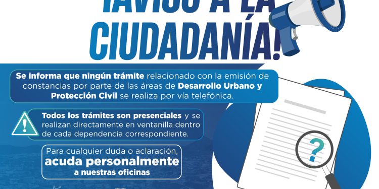 Esta aclaración responde a reportes recientes sobre intentos de engaño a la población, por lo que se reitera que todos los procesos deben realizarse de manera presencial en las oficinas correspondientes, con el fin de garantizar su validez y evitar caer en manos de personas ajenas a la administración municipal.