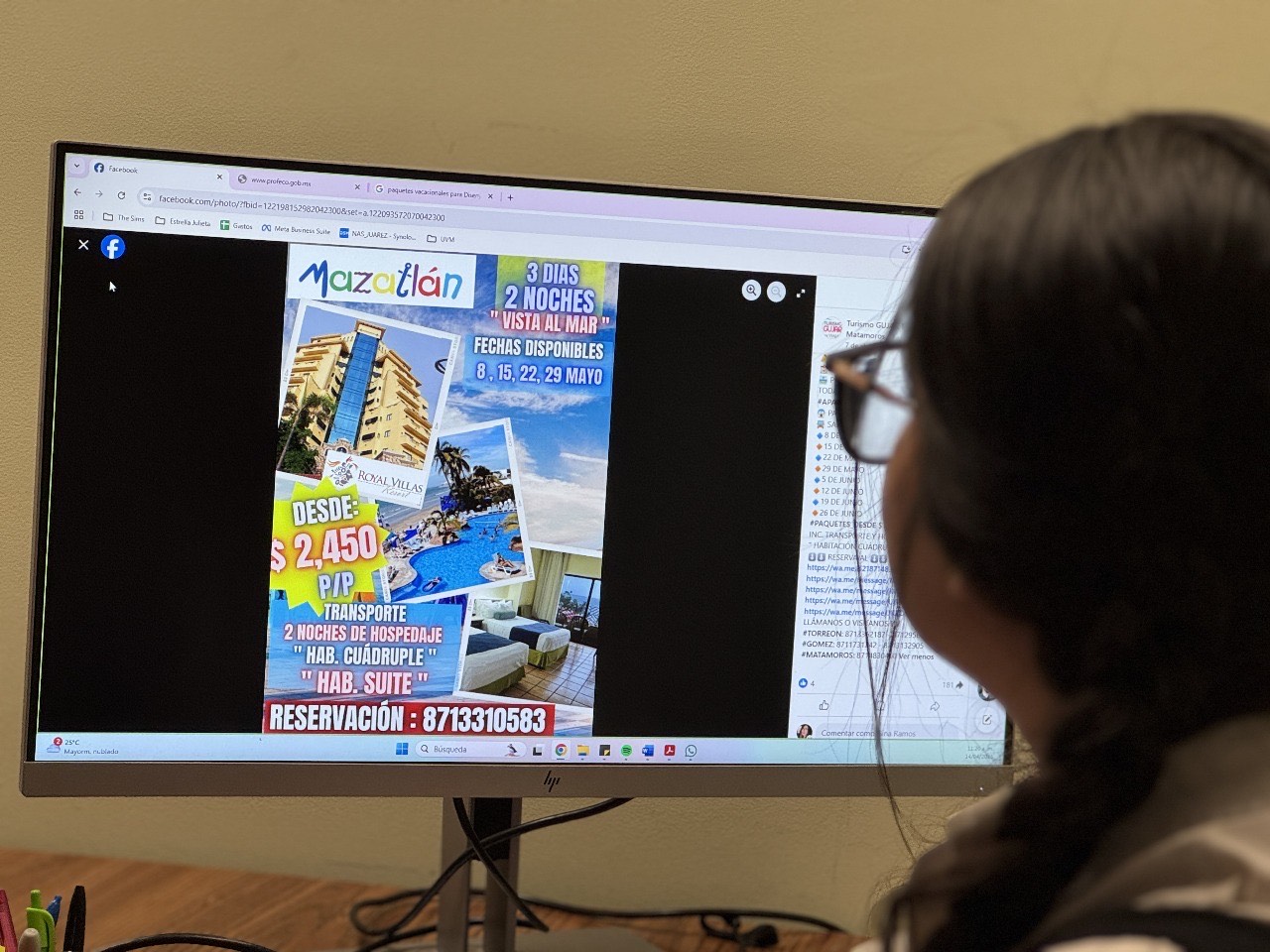 Lo anterior, luego de que derivado del monitoreo en plataformas digitales, se detectara que personas son contactadas por presuntos vendedores de agencias de viajes, quienes les ofrecen promociones vacacionales falsas que van desde vuelos, hasta hospedaje y traslado.