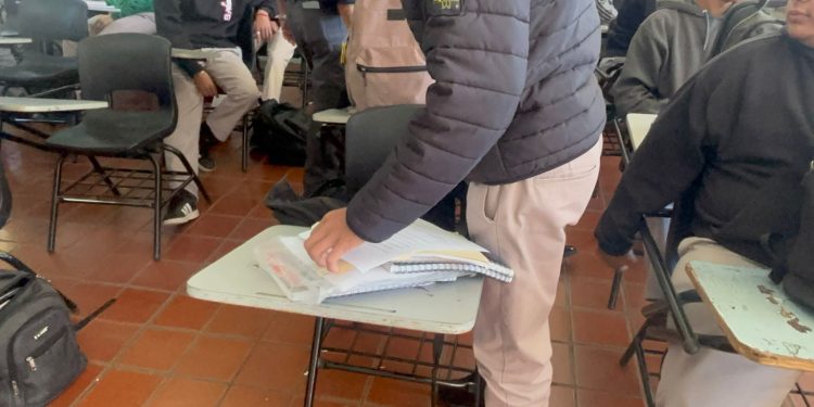 Durante el proceso, las y los estudiantes abrieron personalmente sus mochilas y mostraron sus pertenencias ante la vista de los agentes, en apego a la normativa vigente.