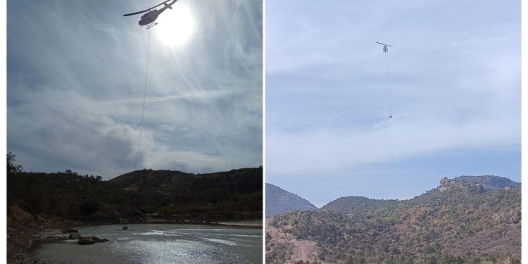 Durante dos días, una aeronave especializada realizó 37 descargas de agua, cada una con una capacidad de 1,200 litros, para la contención de las llamas y la protección de los ecosistemas afectados.