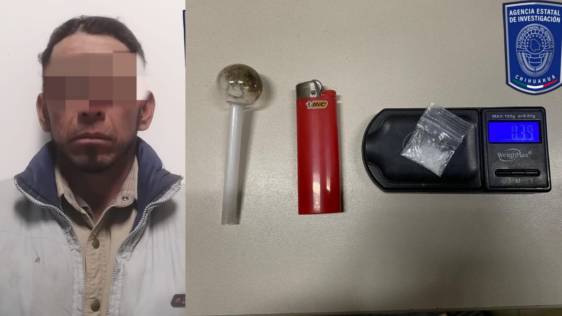Fue durante las revisiones en la colonia Che Guevara, en donde ubicaron a quien se identificó como Gerardo G. R., de 39 años de edad, con domicilio en la colonia Almanceña, en posesión de una pipa de vidrio, un envoltorio de plástico transparente con 0.39 gramos de la droga conocida como cristal y un encendedor.
