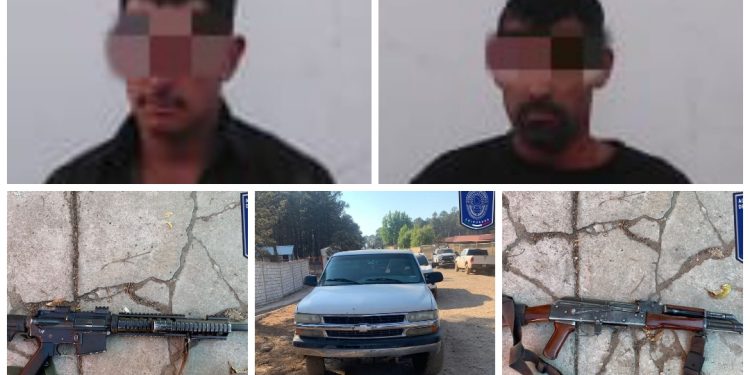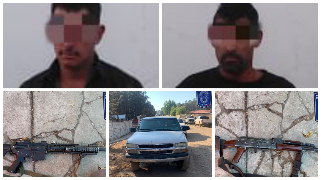 En seguimiento a las acciones de seguridad implementadas en el municipio de Guachochi, autoridades que conforman el Operativo Conjunto detuvieron en el término legal de la flagrancia a dos sujetos por los probables delitos de posesión de armas de fuego de uso exclusivo del Ejército y posesión de vehículo con reporte de robo.