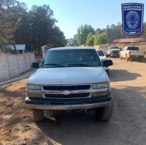 • Vehículo tipo pick up marca Chevrolet, línea Silverado, modelo 2001, color Blanco, el cual contaba con reporte de robo en la ciudad de Chihuahua.