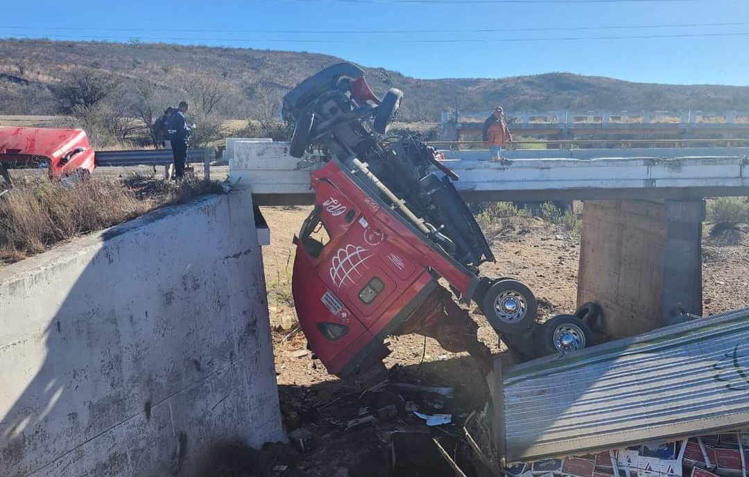 Un trágico accidente ocurrió en la curva de la carretera a Jiménez, otra vez a la altura del ejido Guillermo Baca, cuando un tráiler cayó al desnivel de la zona y el conductor se amputó ambas piernas, por lo que fue trasladado grave a un hospital de Parral.