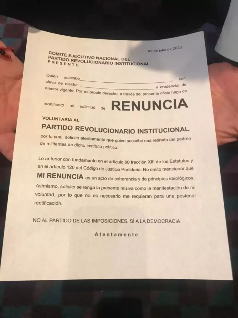 “Con tristeza pero con congruencia anuncio nuestra renuncia al PRI”, dijo Osorio, exgobernador de Hidalgo al advertir “ni nos retiramos de la política ni nos hacemos a un lado… si no se puede cambiar desde adentro lo vamos a hacer desde afuera”.