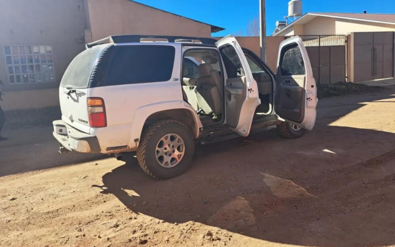 Dentro del vehículo, una camioneta Chevrolet Tahoe, de color blanco, modelo 2002, se localizaron 2 cuadros en forma de ladrillo conteniendo una hierva verde, seca y olorosa con las características de la marihuana, así como un fusil de asalto calibre 7.62×39 con un cargador de plástico abastecido con 28 cartuchos útiles del mismo calibre.