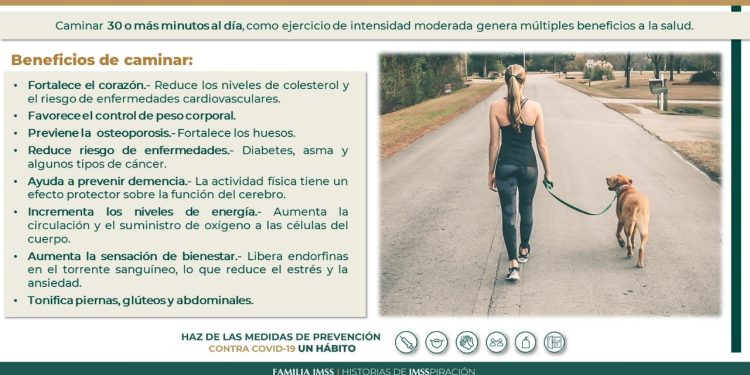 El Instituto Mexicano del Seguro Social (IMSS) informa a la población chihuahuense que caminar es una actividad natural que genera múltiples beneficios para el cuerpo.