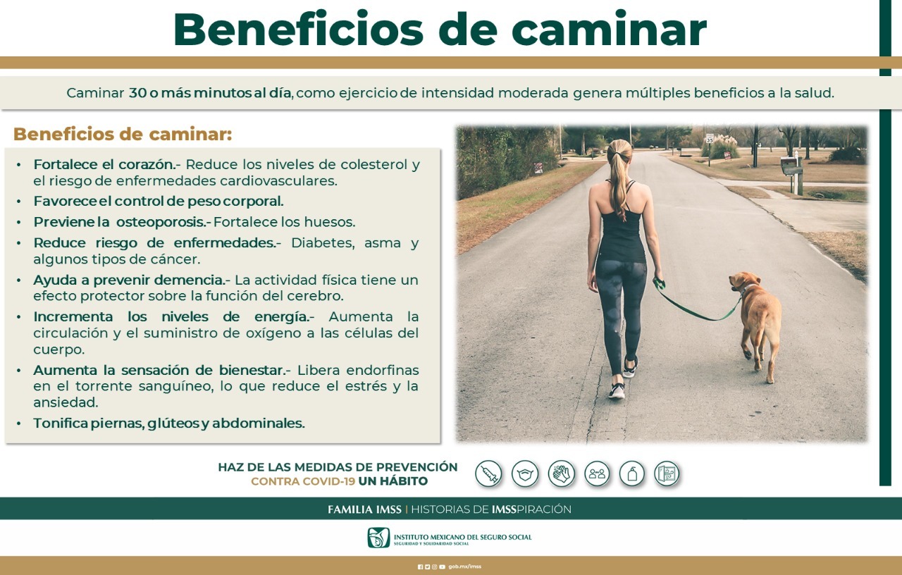 El Instituto Mexicano del Seguro Social (IMSS) informa a la población chihuahuense que caminar es una actividad natural que genera múltiples beneficios para el cuerpo.