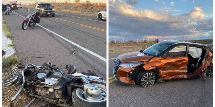 Un motociclista quedó gravemente lesioando e incluso se amputó una pierna después de chocar contra una camioneta en la vía corta a Chihuahua.