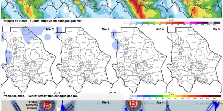En cuanto a los vientos, irán de los 10 y 55 kilómetros por hora; las ráfagas pueden ocasionar tolvaneras en los tramos carreteros de Jiménez a Parral y en algunas zonas de Carichí, Guachochi, Nonoava y Balleza.