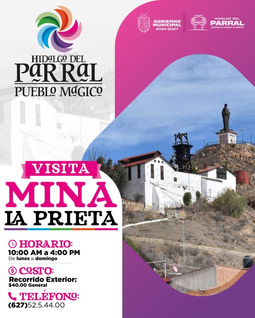 También se encuentra disponible la visita a la Mina La Prieta, la cual ofrece una mirada al pasado minero de Parral, pieza fundamental de su desarrollo histórico. Este recorrido está disponible de lunes a domingo, de 10:00 a 16:00 horas, con una cuota de recuperación de $40 pesos por persona.