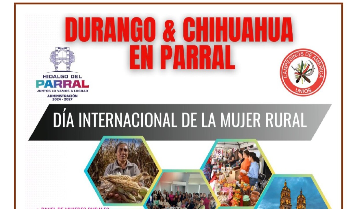 El Gobierno Municipal, en coordinación con la Confederación Nacional Campesina (CNC) de Durango, convocan a la ciudadanía a participar en las actividades que, en el marco del Día Internacional de la Mujer Rural, se llevarán a cabo este 25 y 26 de octubre en Parral.