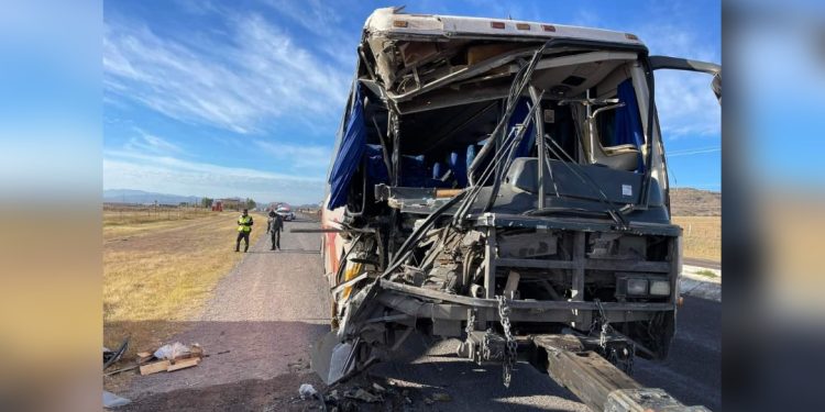 El accidente ocurrió cuando el camión de pasajeros con número económico 204, de la empresa Rápidos de Delicias, chocó contra un camión rabón que iba cargado 12 toneladas de leña de pino.