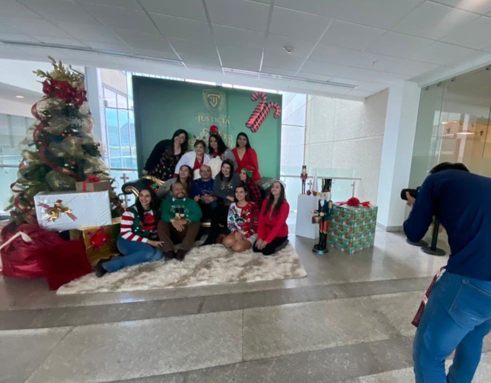 Se trata de una dinámica en la que se busca la integración del funcionariado judicial que participa con un donativo en especie, a cambio de una fotografía en el set festivo preparado por la Dirección de Recursos Humanos específicamente para esta actividad.