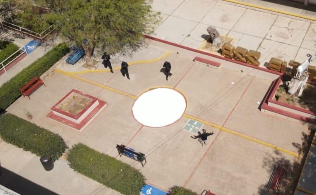 Como parte de los simulacros que se desarrollan de manera periódica, la Dirección de Seguridad Pública Municipal realizó una intervención de portación o uso de armas en el CBTis 228 con el objetivo de brindar herramientas que les permita actuar en una situación de riesgo.