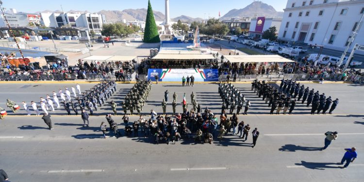 La gobernadora Maru Campos presidió la celebración del desfile conmemorativo por el 114 aniversario del Inicio de la Revolución Mexicana, que contó con la presencia de más de 10 mil personas que se dieron cita en las principales avenidas del centro de la ciudad de Chihuahua para ver el recorrido de los contingentes.
