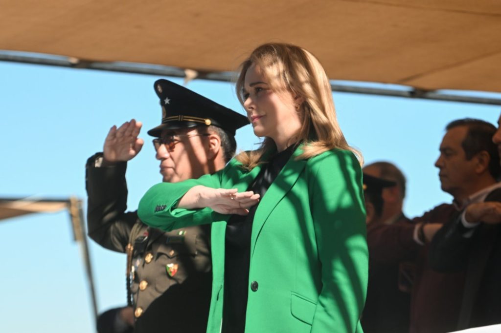 Maru Campos estuvo acompañada por la cónsul de Canadá, Annabelle Larouche, los titulares de las secretarías de Educación y Deporte y de la General de Gobierno, Francisco Gutiérrez Dávila y Santiago de la Peña, así como por la magistrada presidenta del Tribunal Superior de Justicia, Myriam Hernández y el alcalde de Chihuahua, Marco Bonilla, entre otras autoridades militares.