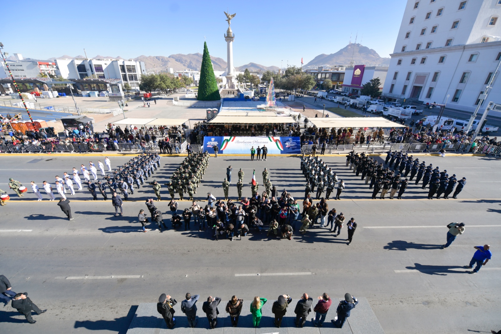 La gobernadora Maru Campos presidió la celebración del desfile conmemorativo por el 114 aniversario del Inicio de la Revolución Mexicana, que contó con la presencia de más de 10 mil personas que se dieron cita en las principales avenidas del centro de la ciudad de Chihuahua para ver el recorrido de los contingentes.