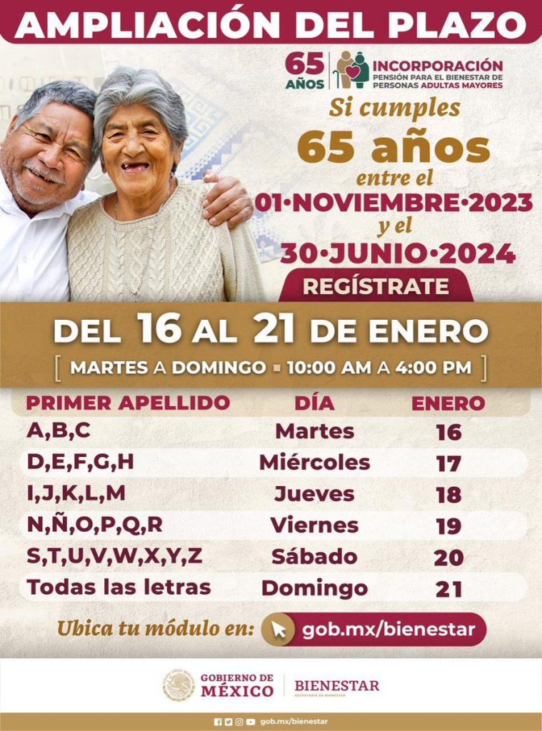 ¿QUÉ FECHA TE TOCA SEGÚN LA INICIAL DE TU APELLIDO PARA INSCRIBIRTE EN LA PENSIÓN BIENESTAR 2024?