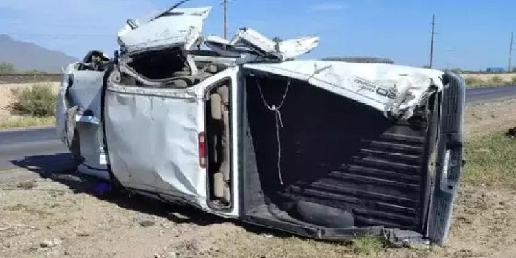 Viajaban ambos en una pick up Toyota de color blanco, con placas de circulación MKX-158-A. El chofer perdió el control y salió del camino.