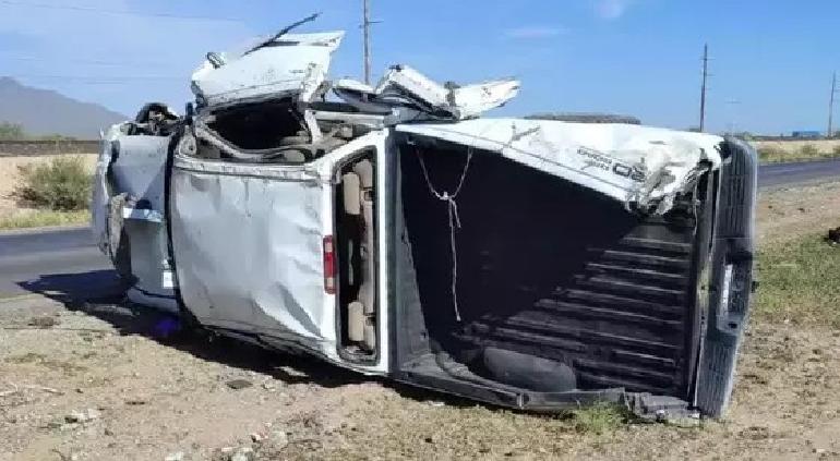 Viajaban ambos en una pick up Toyota de color blanco, con placas de circulación MKX-158-A. El chofer perdió el control y salió del camino.
