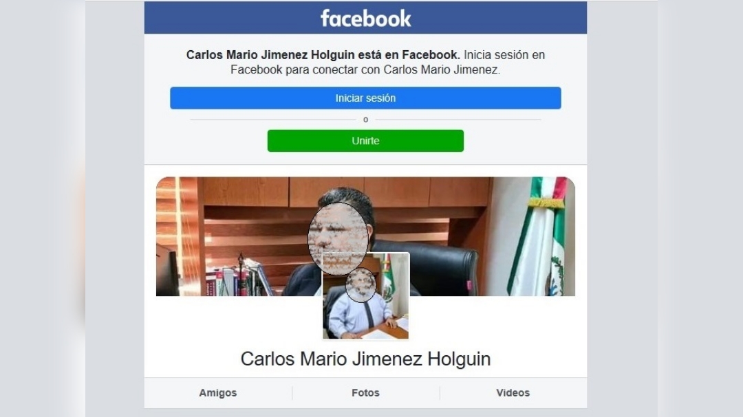 La Unidad Especializada en Investigación de Delitos cometidos a través de las Tecnologías y Extorsión, investiga la creación de dicho perfil en donde se usurpa la identidad. Además solicita reportar el perfil falso directamente en el sitio oficial Facebook a nombre de Carlos Mario Jimenez Holguin bajo la URL o sitio https://www.facebook.com/profile.php?id=100083042520324&sk=about