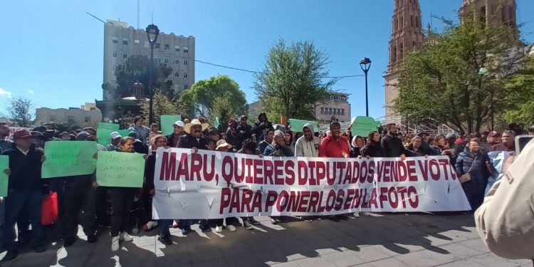 El grupo de militantes del Movimiento de Regeneración Nacional que se congregó a las afueras del Congreso del Estado de Chihuahua para manifestarse en contra de la diputada presidenta del mismo, Adriana Terrazas, también lo hizo contra la gobernadora María Eugenia Campos Galván, en conjunto con el Instituto Estatal Electoral por, presuntamente, vulnerar candidaturas.