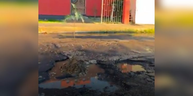 Durante este martes 10 de febrero, el regidor fue observado colocando este tipo de señalizaciones improvisadas en la avenida Zaragoza y en las inmediaciones del Parque del Niño, zonas donde el pavimento presenta daños visibles.