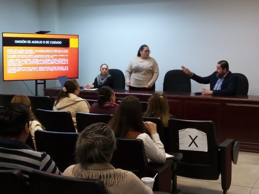 En la charla participaron las agentes del Ministerio Público, Erika Franco Chavira, Mabel Ariana Martínez Lazcano y el Fiscal de Distrito, Juan Antonio Olague Barraza, con temas inherentes a los delitos de omisión de auxilio y cuidados, así como el de sustracción de menores.