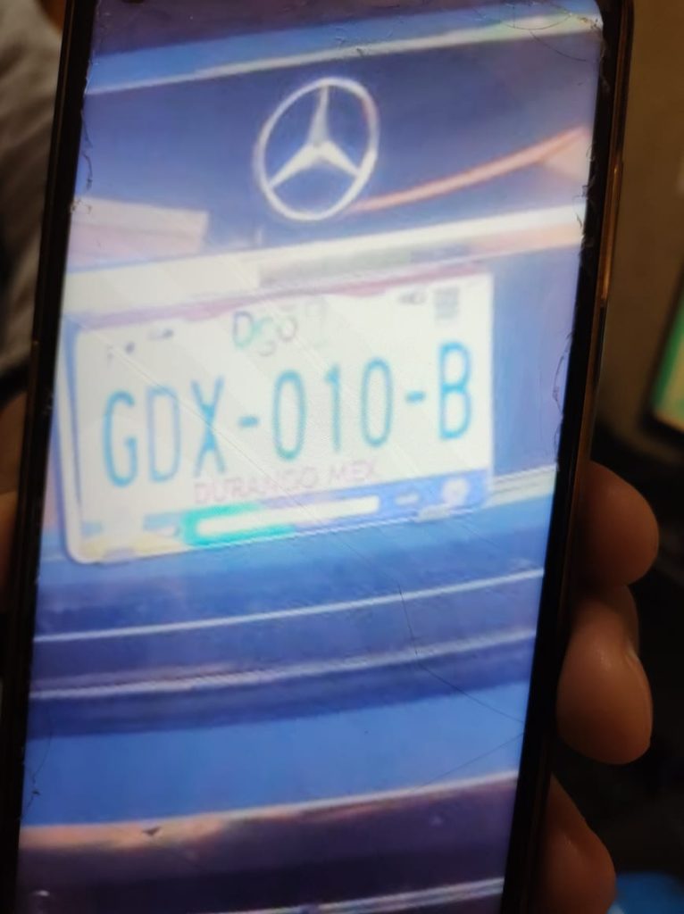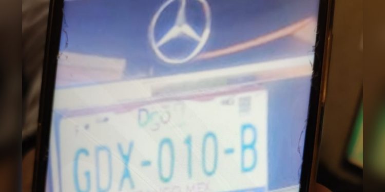 Las placas del vehículo son del estado de Durango y han sido identificadas bajo la numeralia GDX-010-B.