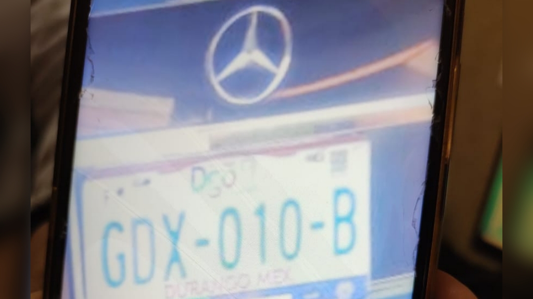 Las placas del vehículo son del estado de Durango y han sido identificadas bajo la numeralia GDX-010-B.