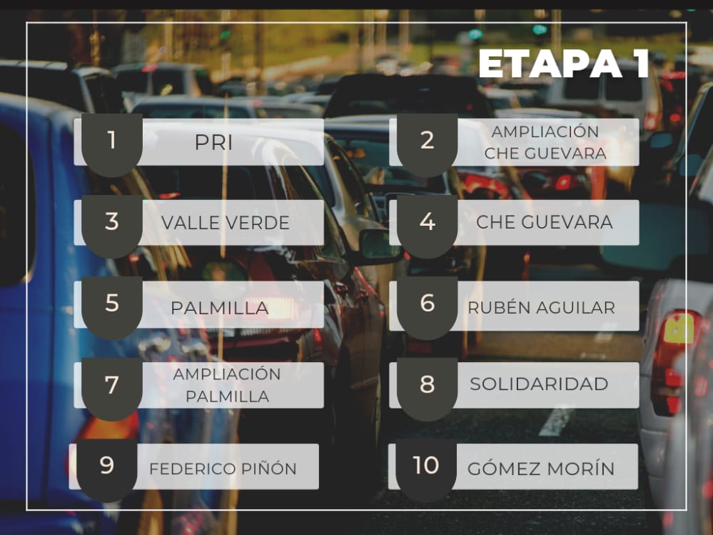 Más a detalle, la edil priista abundó que, dentro de la misma primer etapa, se incluirían la Che Guevara y la ampliación de la misma, así como la Valle Verde, Palmilla y su ampliación, la Rubén Aguilar, Solidaridad, Federico Piñon y la Gómez Morin.