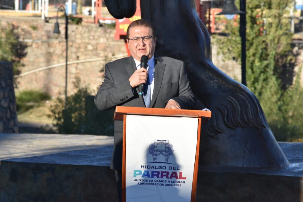 El edil estuvo acompañado por autoridades del Gobierno de Parral y militares, quienes colocaron una ofrenda floral y rindieron honores en memoria de los héroes en las inmediaciones del Pabellón Revolucionario.