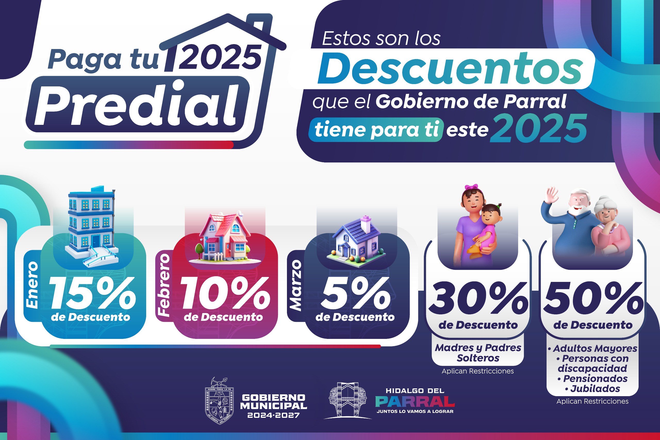 El Gobierno de Parral, a través de la Tesorería, dio a conocer acerca de los descuentos que se aplicarán por el Impuesto Predial durante los primeros tres meses del 2025, para lo cual se contará con 6 sedes y asimismo, a quienes realicen el pronto pago podrán participar en la rifa de un automóvil del año y diversas sorpresas más.