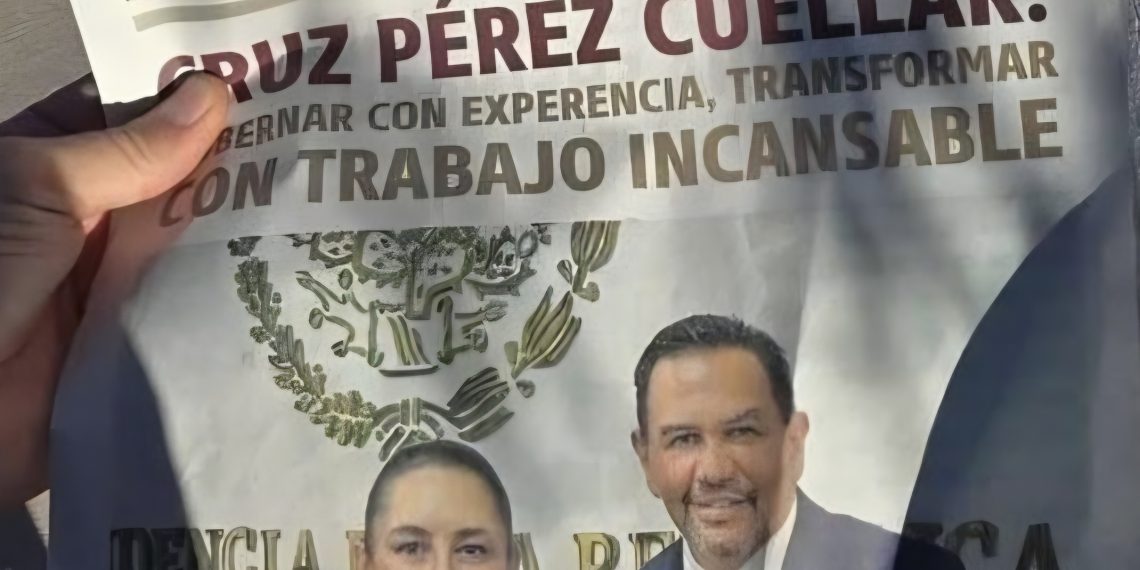 La documentación entregada a la autoridad electoral incluye un tabloide impreso en cuya portada e interiores aparecen el nombre e imagen de Pérez Cuéllar y de la presidenta de México, Claudia Sheinbaum Pardo. El contenido expone supuestos logros y trayectoria del morenista, quién es presentándo como “la persona confiable para llevar la Cuarta Transformación al estado”, y con un amplio respaldado por la mandataria federal.
