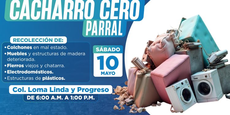 Este sábado 10 de mayo se llevará a cabo una nueva jornada del programa “Cacharro Cero Parral” en las colonias Loma Linda y Progreso, con el propósito de fortalecer las acciones de limpieza y eliminar factores que puedan representar un riesgo para la salud pública.