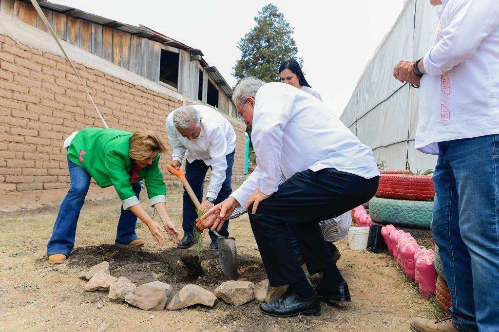 Cabe señalar que previo al evento protocolario se realizó un recorrido por el vivero ubicado en la comunidad de Atascaderos, en Guadalupe y Calvo y la Gobernadora y el Presidente de la República plantaron un árbol a un lado del mismo.