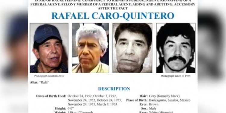 Rafael Caro Quintero fue detenido el 15 de julio pasado en el municipio de Choix, Sinaloa. Por información que llevara a su captura, la Administración de Control de Drogas (DEA) ofrecía 20 millones de dólares (mdd).