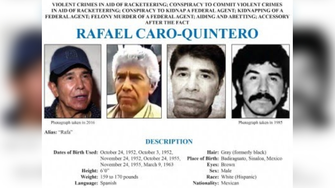 Rafael Caro Quintero fue detenido el 15 de julio pasado en el municipio de Choix, Sinaloa. Por información que llevara a su captura, la Administración de Control de Drogas (DEA) ofrecía 20 millones de dólares (mdd).
