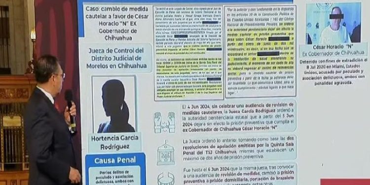 Luis Rodríguez Bucio, subsecretario de Seguridad Pública de la Secretaría de Seguridad y Protección Ciudadana, expuso el controversial caso del exgobernador de Chihuahua, César Horacio «N», quien enfrenta cargos por peculado y asociación delictuosa con penalidad agravada.
