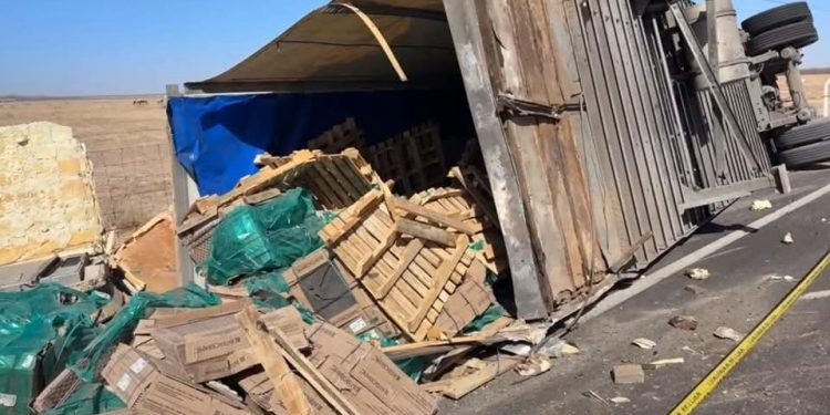 La mala práctica del robo de mercancía de unidades siniestradas se volvió a repetir al mediodía de este miércoles cuando un tractocamión sufrió una volcadura sobre la carretera de Jiménez-Camargo.