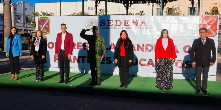 La mañana de este lunes, la Secretaría de la Defensa Nacional realizó los Honores a la Bandera en compañía de directivos de planteles educativos en la Plaza de Armas, mejor conocida como Plaza Principal de Parral.